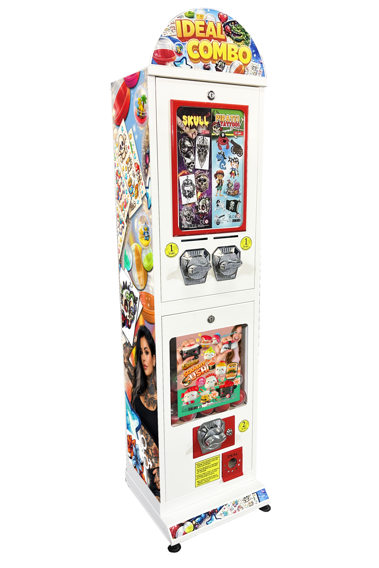 Capacité pour capsules : 150 pièces diamètre 65 mm – Capacité pour capsules : 250 pièces diamètre 50 mm – Capacité tattoos : 2 colonnes de 300 pièces