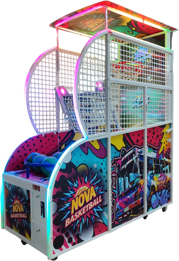 Monnaie électronique COMESTERO RM5. Construction en métal et polycarbonate laminé. Affichage numérique du score, des crédits et des records. 5 billes incluses. Système de déplacement facile (6 roues avec système de blocage). Montage simple et rapide. Alimentation : 230 V/50 Hz. Consommation : 105 W (mode démo), 180 W (mode jeu).